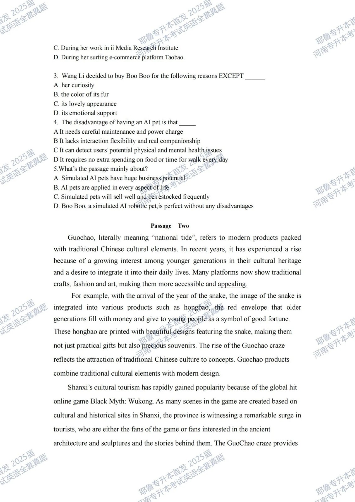 2025届河南专升本考试英语全套真题耶鲁专升本首发