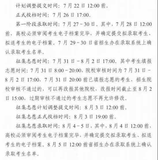 今天截止志愿填报,接下来还有专业课考试,考完之后再划定分数线,最后才是录取。录取工作于8月30日前完成,考生凭准考证登录网上填报志愿主页(网址http://gkzy.eaagz.org.cn/)查询录取情况。