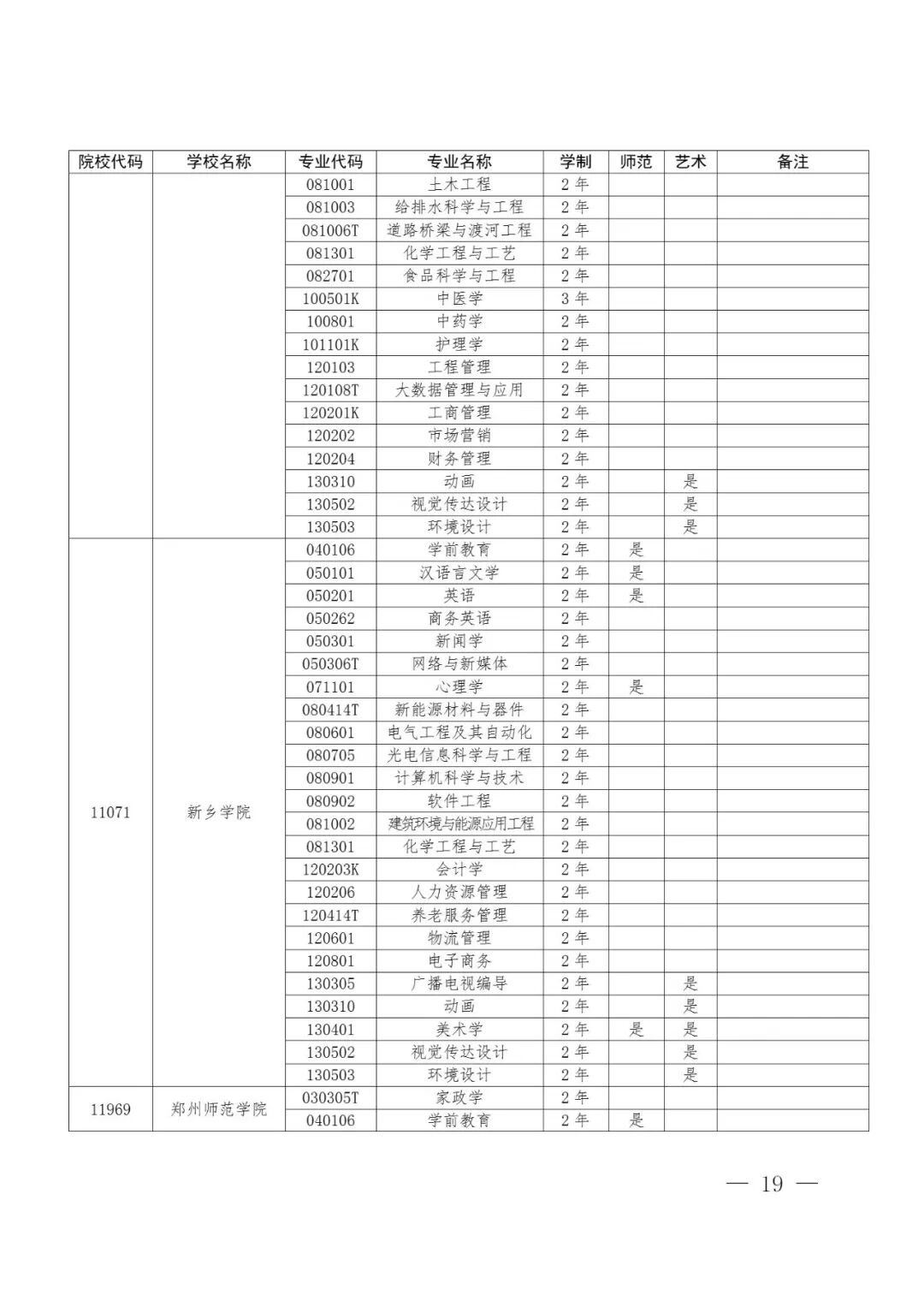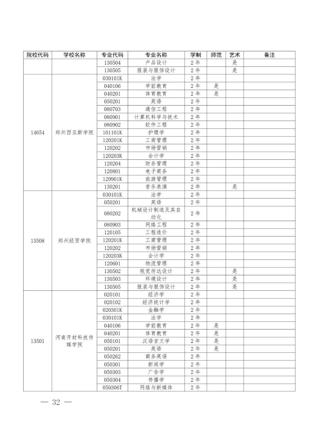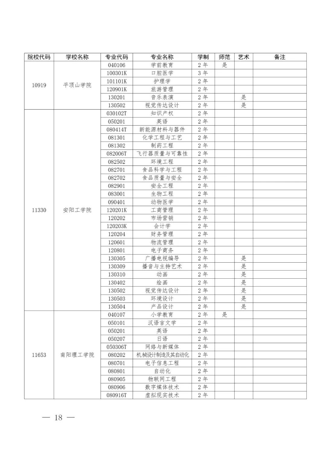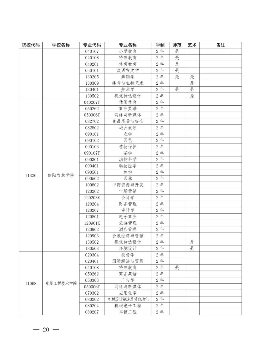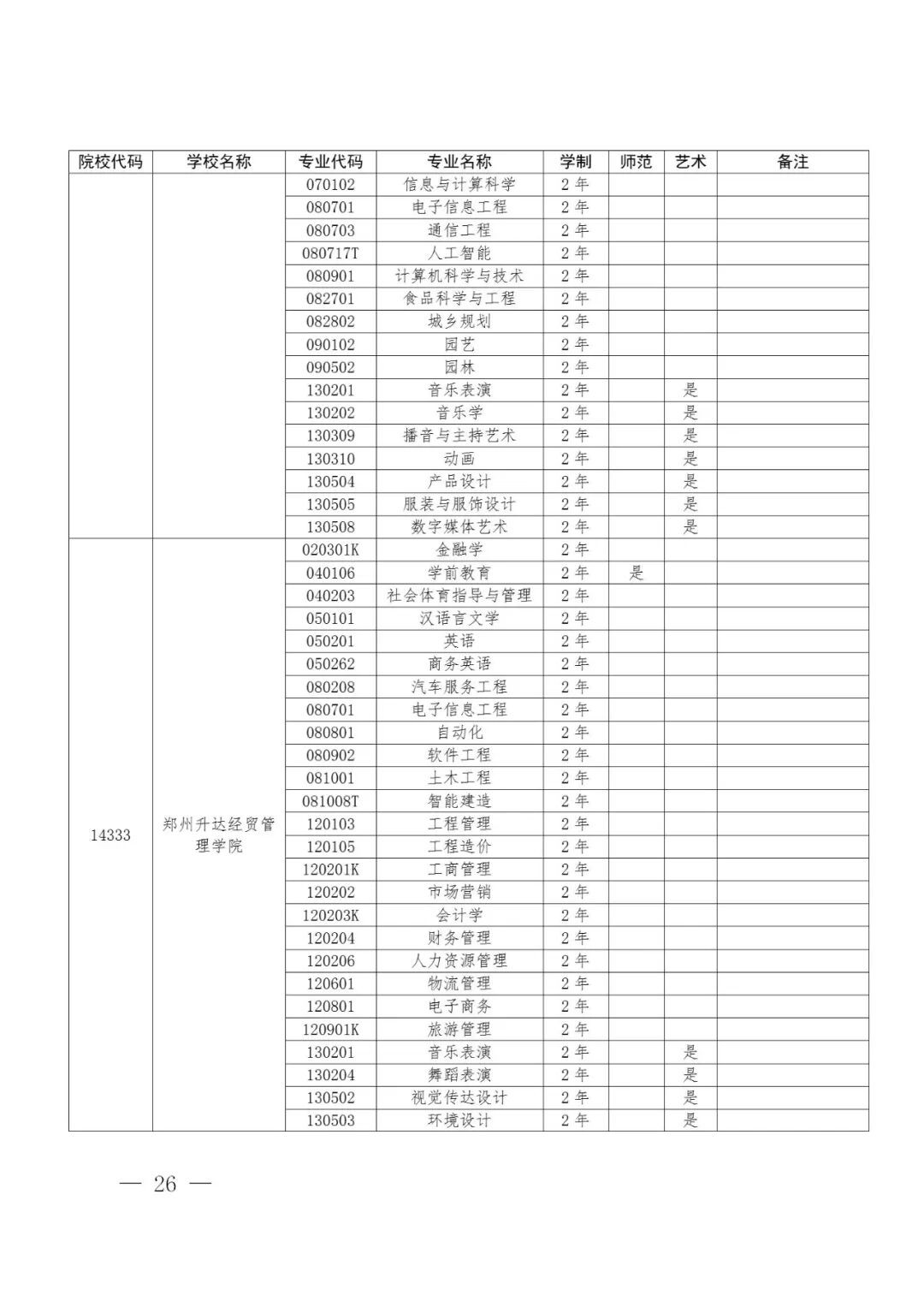 各省辖市、济源示范区、航空港区教育局、退役军人事务局,各军分区(警备区)动员处、济源市人武部,各普通高等学校:为深入贯彻全国教育大会精神,落实《河南省人民政府关于印发河南省深化普通高等学校考试招生综合改革实施方案的通知》要求,着力搭建学生成长“立交桥”,结合我省实际,现就做好我省2026年普通高等教育专科层次起点升本科教育(以下简称“专升本”)考试招生工作,通知如下:(一)河南省2026年普通高职(专科)应届毕业生,且现实表现良好。(二)普通高职(专科)在校生(含高校新生)在河南省应征入伍,服现役满规定的最低年限或符合规定的提前退役条件,经部队批准退出现役后完成高职(专科)学业的毕业生;普通高职(专科)毕业生在河南省应征入伍,服现役满规定的最低年限或符合规定的提前退役条件,经部队批准退出现役后的大学生士兵,可申请退役大学生士兵免试专升本招生。对录取后未报到、自行放弃入学资格的退役大学生士兵考生,不再享受免试专升本政策。(一)招生高校和专业详见《河南省2026年普通高职(专科)毕业生进入本科阶段学习招生高校及专业总表》(附件1)。本、专科专业对照及考试课程,详见《本、专科专业对照及考试课程一览表》(附件2)。凡不符合《护士条例》规定的申请护士执业注册条件,且不能对照普通本科护理学专业、职业教育本科护理专业安排专升本考试的医学美容技术(原医疗美容技术)、呼吸治疗技术等专科专业,不得擅自安排招生。高校分专业招生计划另文下达。(二)继续实施“专升本专项计划”。在巩固拓展脱贫攻坚成果过渡期内,对全省原建档立卡(脱贫享受政策户和脱贫不稳定家庭学生中风险未消除的监测对象)高职(专科)毕业生,安排适量专升本招生计划,进行单独录取。各高校要高度重视家庭经济困难学生资助工作,建立健全国家奖助学金、国家助学贷款、勤工助学、特殊困难补助、学费减免、学费补偿和贷款代偿等多种形式并存的高校家庭经济困难学生资助政策体系,开设家庭经济困难学生入学“绿色通道”,确保每一名家庭经济困难的学生能够顺利入学并完成本科阶段学业。(三)做好退役大学生士兵免试专升本招生工作。按照教育部、中央军委国防动员部有关文件精神,符合条件的退役大学生士兵考生可申请参加我省2026年退役大学生士兵免试专升本招生。省教育厅根据学生报考情况以及高校申报情况统筹安排专升本免试招收退役大学生士兵的高校、专业和招生计划,进行单独录取。具体招生高校、专业、计划另行通知。各高校要依据教育部和省有关规定,认真制订本校专升本招生章程。主要内容包括:高校全称、校址(涉及校区等须注明),层次(本科),办学性质(公办或民办),办学类型(普通本科、职业本科),专业教学培养使用的外语语种,录取规则,身体健康状况要求,学费标准和住宿费标准,学生资助政策(资助项目名称、资助标准、资助范围、资助对象、流程等,包括国家资助、社会资助、校内资助),颁发学历证书的学校名称、证书种类及其他信息,联系电话、网址,以及其他须知等。待国家招生计划下达后,各高校要根据核准的招生计划,另行向社会提前公布分专业招生计划数。各高校须于2025年12月5日前将招生专业上传至“河南省高等教育分校分专业网上申报系统”(网址:http://gxzsjh.jyt.henan.gov.cn/)进行审核。招生专业审核通过后,于12月12日前将普通专升本招生章程及辅助材料上传至“河南省普通高校招生章程核定系统”(网址:http://gxzszc.jyt.henan.gov.cn)进行核定。章程系统中,每所高校的招生专业已录入系统库,上报时只需按照系统流程选择即可。各高校应于12月26日前将省教育厅核定通过的本校招生章程公布网址报送省教育考试院。省教育考试院负责汇总并向社会及考生公布有关高校招生章程中的主要内容或高校公布章程的网址。1.符合报名条件的考生,应按照省教育考试院规定的时间、程序和要求,参加我省2026年专升本考试报名和信息采集工作,并按照本、专科专业对照要求选择报考专业。考生应如实填写基本信息,并对所填信息的真实性、准确性负责。凡在填写报名信息时擅自更改个人学籍信息或其他信息者,一律取消其报考、录取和入学资格。按政策规定进行学籍异动者,高校学籍管理部门务必及时完成学生学籍异动手续,不得影响学生专升本报名、考试和录取。2.我省高校应届毕业的考生在毕业高校参加报名。符合退役大学生士兵免试专升本报名资格的考生,可选择报考退役大学生士兵免试专升本,或者参加全省统一普通专升本考试,二者不得兼报。3.省内高校往届毕业、省外高校毕业的退役大学生士兵,在2026年3月15日前集中进行免试专升本报名,具体由省教育考试院另行通知。其中,省内高校毕业的考生在原毕业高校参加报名;原毕业高校非专升本报名点或非我省高校毕业在我省应征入伍的考生,由应征入伍地的市、县(区)招生考试机构安排报名。4.退役大学生士兵免试专升本考生完成信息采集后,我省普通高校招生考生服务平台自动生成《河南省2026年普通高职(专科)退役大学生士兵免试专升本审核表》,由考生所在的专升本报名点统一打印发至考生。资格审核贯穿报名、考试、录取和入学全过程。凡是以弄虚作假等手段违规获取相应资格的考生,一经查实,将依据相关
