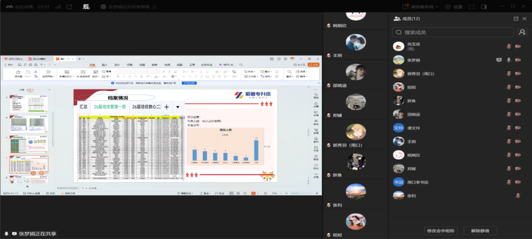 为深入复盘教学成效、优化备考策略,耶鲁专升本周口教学区于1月9日晚召开12月联考成绩分析线上会议。本次会议由王炯主管主持,河南耶鲁教育副总裁郑键、南区工作组邵晓涵老师与全体培优班班主任共同参与,围绕班级管理与联考数据展开系统性分析,凝聚共识、明确方向,为学员升本冲刺提供坚实支持。