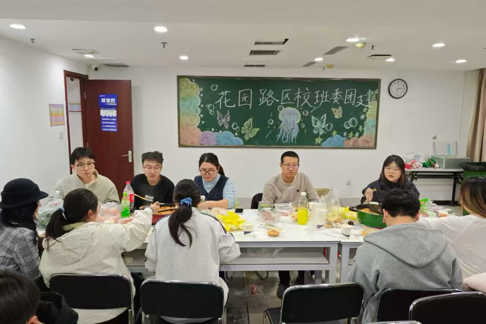 文艺委员巧手布置板报,老师与班委协作准备食材。大家围坐共享火锅、畅聊日常,在温馨热闹的氛围中增进情谊,为后续座谈营造轻松愉快环境。 座谈会上,各班委立足职责与班级实际,围绕增强凝聚力、改善迟到现象等议题积极发言、深入探讨。大家主动梳理问题、分享经验,提出切实可行的改进建议,展现出强烈的责任意识与服务精神。 本次活动不仅是一次欢乐的团聚,更是一场务实的沟通。通过交流,班委之间的协作更加顺畅,班级建设的共识进一步凝聚,为后续各项工作的有序开展提供了有力支撑。 相信在全体班委的带动下,花园路教学区各班将更加团结向上,师生携手、共同奋进,书写班级成长与集体进步的崭新篇章! 文字:吴威威