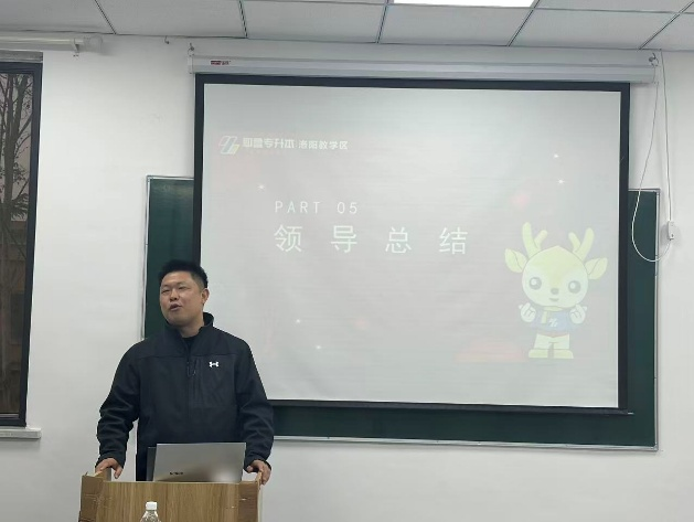 洛阳分校执行校长付晓亚在会上系统阐述了业绩规划与月度营销布局,通过数据图表清晰呈现各教学点招生成果与市场拓展成效,并详细说明2026年月度战略与实施路径。他强调,教学区将始终秉承“同心同行,立己达人”的文化理念,以精准运营推动增长,以优质服务赢得信任。总部领导为洛阳教学区发展注入信心与方向。