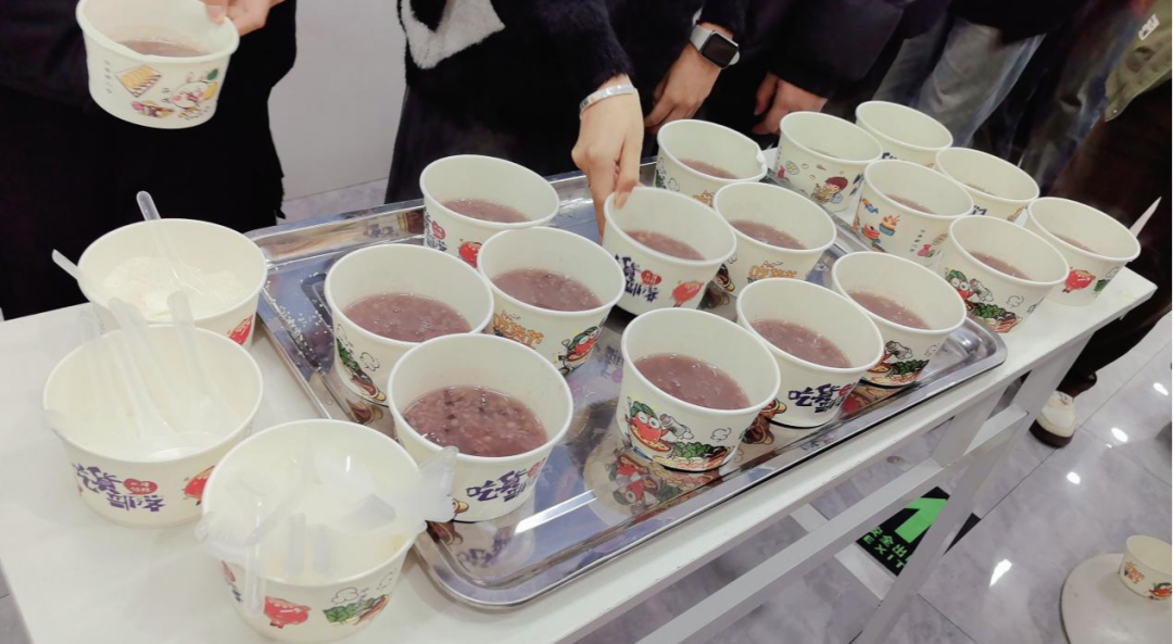 课间时分,老师们将一碗碗热腾腾的腊八粥送到学生手中。学生们没想到在学校也能喝到腊八粥!觉得耶鲁的老师们太暖了!走廊里顿时欢声笑语。同学们一边品尝软糯香甜的粥,一边交流备考心得,气氛温馨如家,笑容里满是感动。