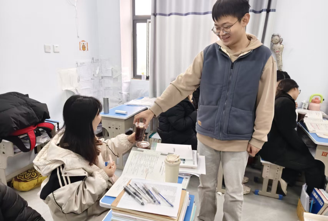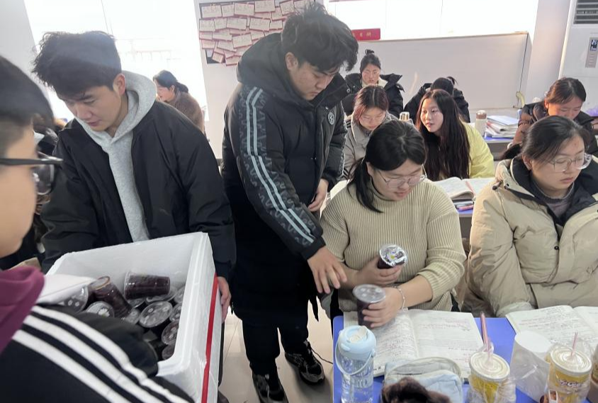 老师手捧温粥,轻轻走入每一间教室,将这份冬日的问候递到学员手中。无需言语,温暖已在眼神与笑意间流转。学员们从书本中抬起头,惊喜接过,教室里的空气似乎都柔和了几分。镜头记录下这些瞬间——有人轻捧粥杯,有人相视而笑,为紧张的备考日常定格下温暖的注脚。