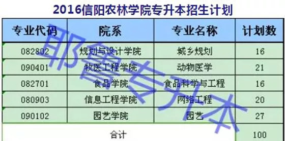 汇总|信阳农林学院2016--2020年专升本招生计划